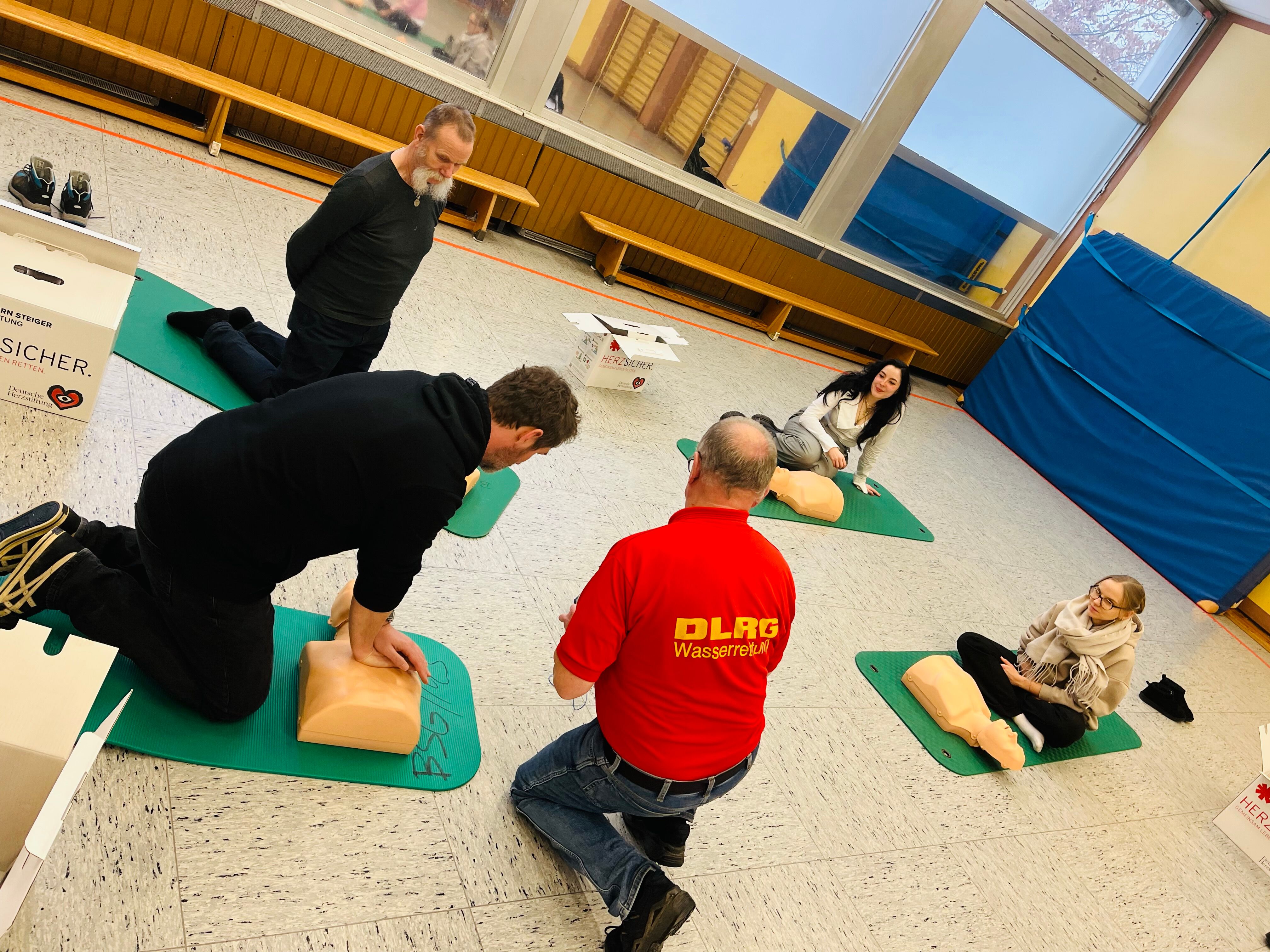 Im Rahmen des Projekts „Prüfen, Rufen, Drücken, Schocken“ haben sich die Lehrkräfte unserer Schule in Kooperation mit der Björn-Steiger-Stiftung fortgebildet, um das Thema Wiederbelebung nachhaltig im Schulalltag zu verankern. Danke an die DLRG Kelsterbach und Karlo Heldmann für die fachkundige Schulung. Ziel der Schulung ist es, Schülerinnen und Schüler frühzeitig mit lebensrettenden Maßnahmen vertraut zu machen und ihnen die Angst vor dem Handeln im Notfall zu nehmen. Auf dieser Grundlage wird nun ein Reanimations-Workshop an unserer Schule durchgeführt, an dem alle Klassen teilnehmen. Die Schülerinnen und Schüler lernen dabei Schritt für Schritt, wie sie einen Notfall erkennen, Hilfe rufen und eine Herzdruckmassage durchführen können. So vermitteln wir praxisnahes Wissen, das im Ernstfall Leben retten kann.